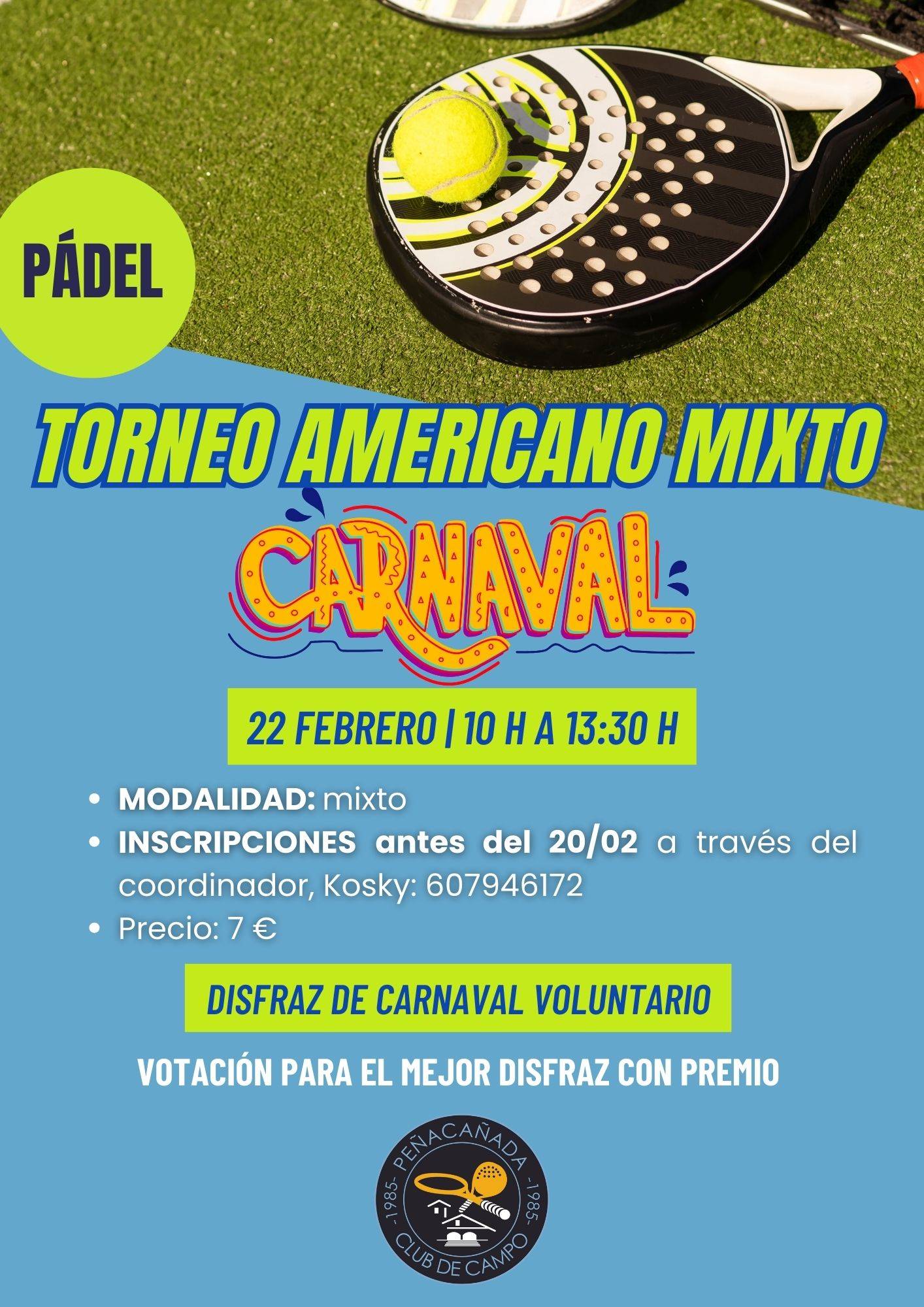 ¿Listos y listas para jugar y pasarlo en grande? El domingo 22 de febrero, de 10:00 a 13:30 h, celebramos en Peñacañada el Torneo Americano Mixto con espíritu de Carnaval, con un gran ambiente y un formato ágil para pasarlo en grande.