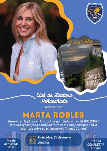 El Club de Lectura convoca un nuevo encuentro en torno a 'Amada Carlota', de Marta Robles, que celebraremos el 28 de enero. En la cena-coloquio comentaremos la obra para compartir impresiones y resolver dudas sobre su trama y personajes. Te animamos a leer el libro con antelación y reserva ya tu plaza.