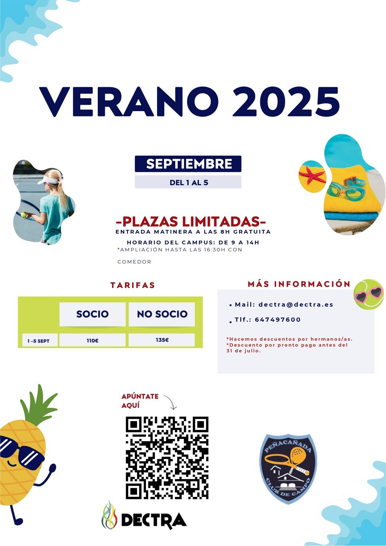 Ya tenemos todo a punto para que niñas y niños vivan unos días repletos de deporte y diversión en el Campus de septiembre de la Escuela de Tenis y Pádel de Peñacañada.